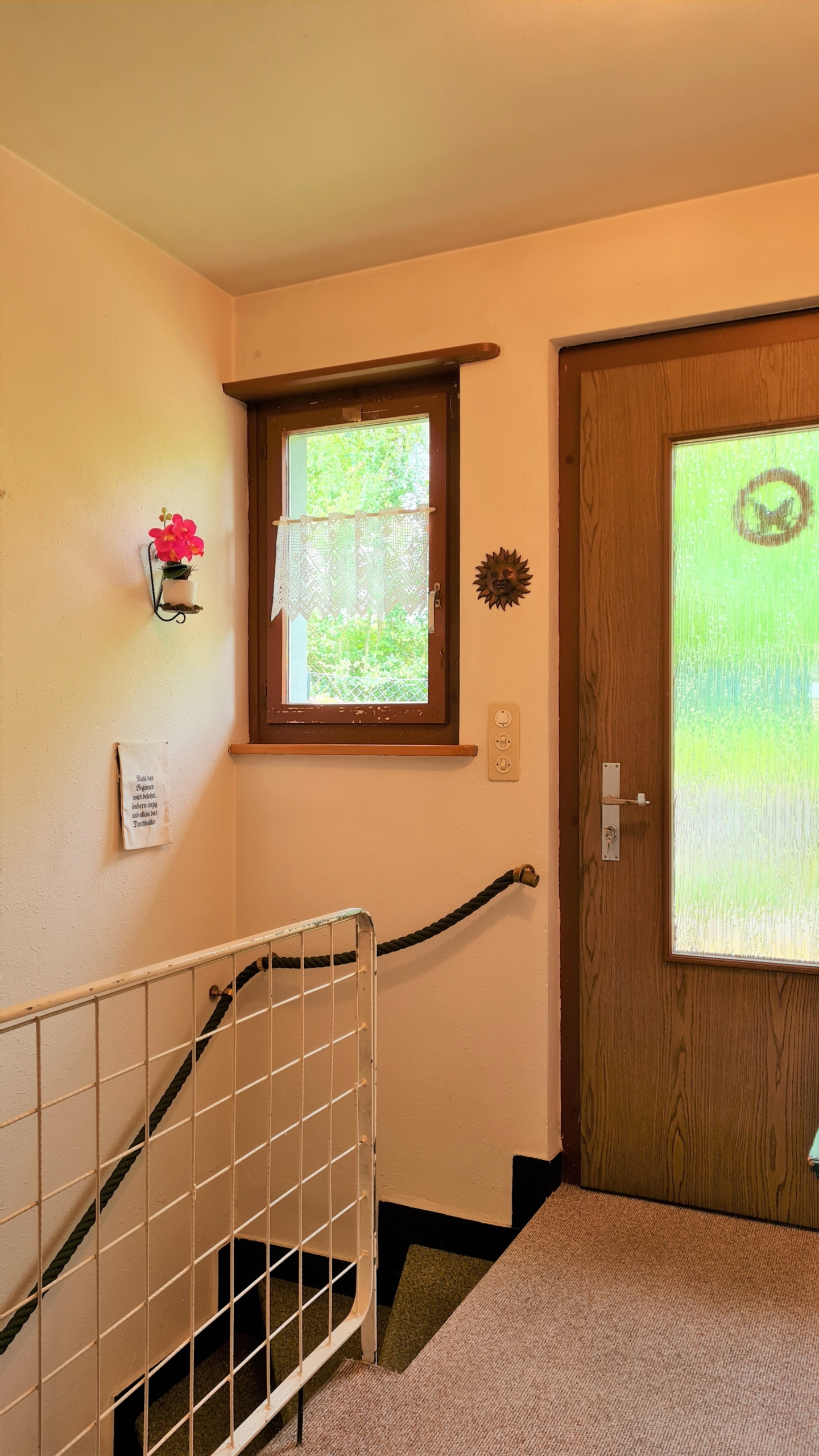 Im Obergeschoss liegt die 4.5 Zimmerwohnung mit dem Hauseingang, der Küche, der Wohndiele und dem Badezimmer. Ein Highlight ist sicher der beheizbare Wintergarten, der auch an kühlen Tagen zum gemütlichen Verweilen einlädt.