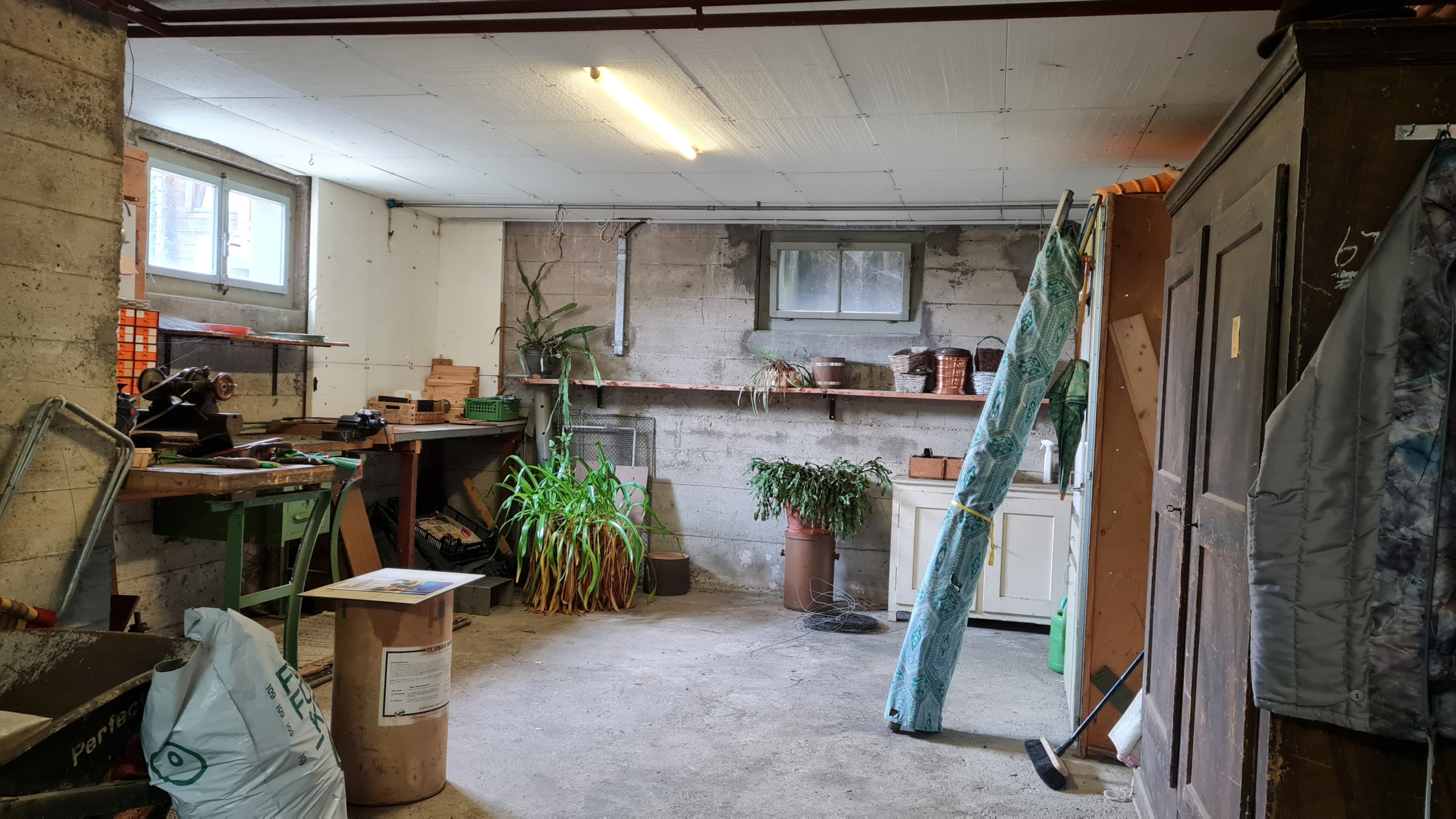 Im Erdgeschoss mit separatem Eingang befinden sich die Heizung, ein Kellerraum sowie die Garage. Diese bietet Platz für zwei Autos (längs hintereinander) oder sie kann auch als Werkraum für Hobbyhandwerker dienen. Vor dem Haus können ebenfalls 1-2 Fahrzeuge geparkt werden.