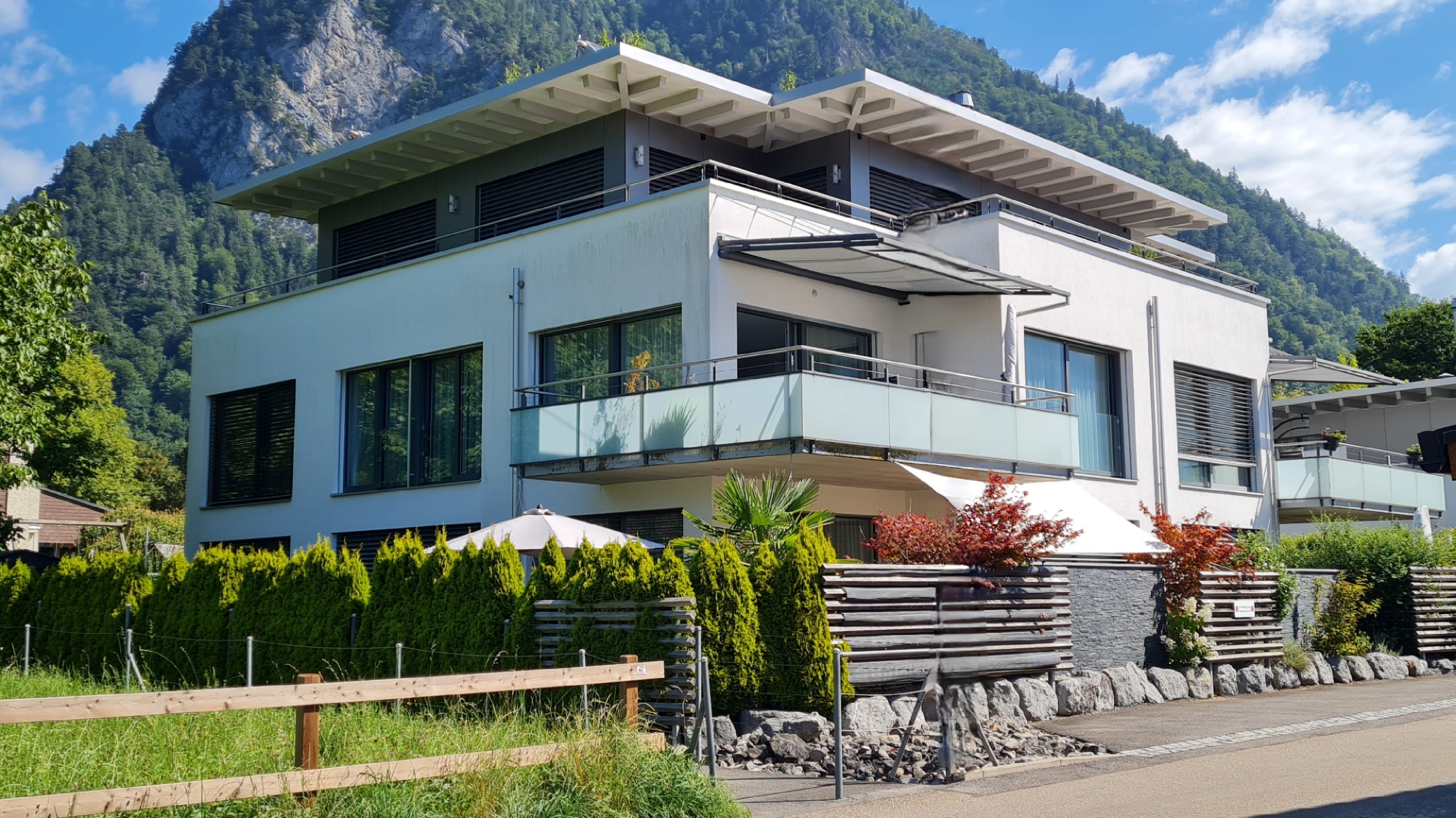 Die 2013 erstellte grosszügige 4.5 Zimmerwohnung liegt „auf dem Bödeli“ im „Stedtli“ Unterseen an absolut ruhigem und optimal besonntem Standort und geniesst einen wunderschönen unverbaubaren Blick auf Eiger, Mönch, Jungfrau und zum Niesen. Ein grosser Balkon lädt zum Entspannen und Relaxen ein. Durch die grossen Fensterfronten dringt viel Licht in die Wohnung und macht die Räume hell und gemütlich. Der Ausbau wurde geschmackvoll mit edlen Materialien ausgeführt. Die Wohnung verfügt über zwei Badezimmer und ein grosses Wohn- Esszimmer mit offener Küche.
